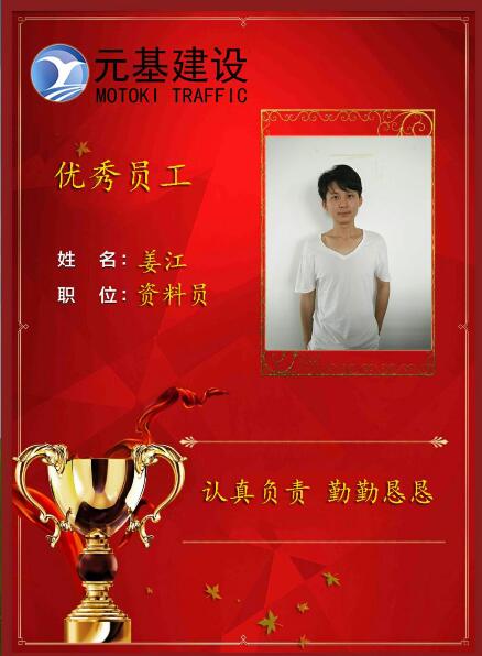 姜江:工程部資料員,自進(jìn)公司以來,遵守公司規(guī)章制度,對(duì)待工作認(rèn)真負(fù)責(zé)、履職盡責(zé),協(xié)助公司領(lǐng)導(dǎo)出色完成多項(xiàng)交通設(shè)施工作任務(wù)。